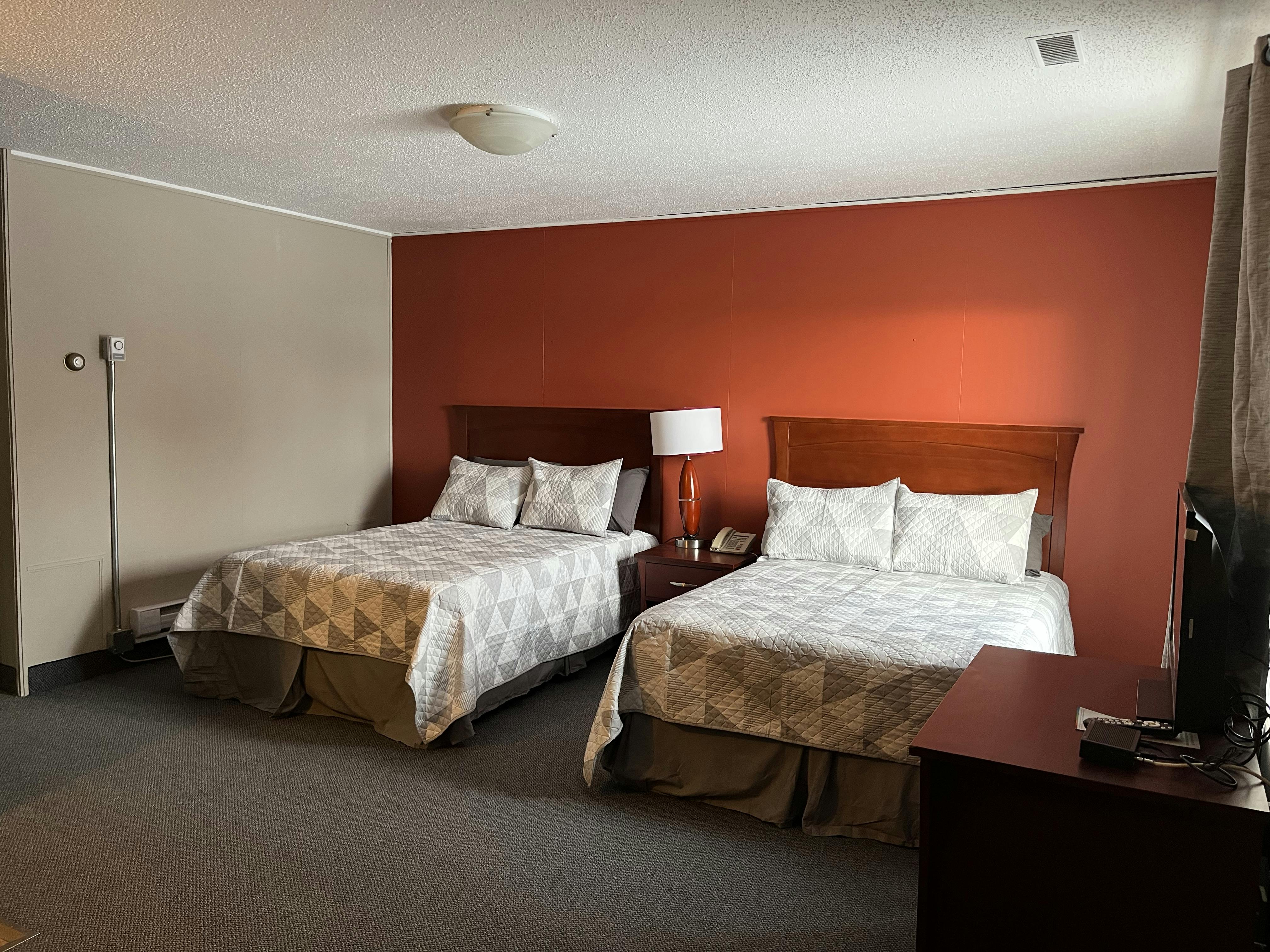 2 double beds, fridge, stove, microwave, tv, kitchen supplies